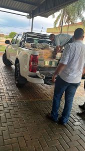 O Fundo Social recebeu: sal (9kg), Fubá (5kg), amido de milho (200gr), molho de tomate (2,1kg), açúcar (50kg), óleo (64 litros), arroz (127kg), farinha (21kg), feijão (137kg), macarrão (124,5kg) e leite (544 litros); um total aproximado de 1083,8kg, recebidos através dos motociclistas na tarde desta segunda-feira, 02.