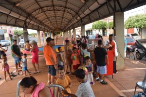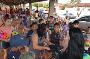Foi realizada distribuição de pipoca, algodão doce, pula-pula, show ao vivo e distribuição de presentes para as crianças que compareceram.