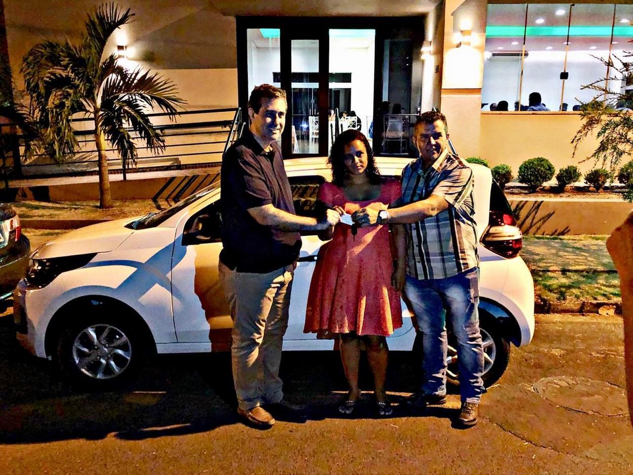 Na ocasião também foi entregue o carro 0km para a ganhadora da Promoção Natal Feliz, Reiniete Feliciano da Costa Santos, que fez suas compras na loja M.M Presentes. Os empresários Antonio Carlos e Selma da M.M Presentes participaram da solenidade de entrega.