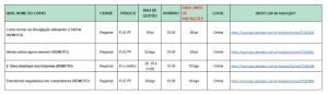Os cursos serão realizados de forma remota, online, e os interessados podem encontrar o link de inscrição em cada curso, que estão disponíveis no site do SEBRAE.Confiram a agenda de cursos on line sebrae – mês de julho e agosto.