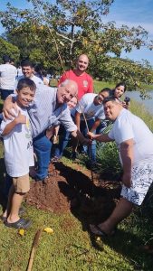 O Chefe do Executivo ressaltou a importância de envolver as crianças no plantio de árvores em nosso município e, pessoalmente, plantou, às margens do lago, uma muda de árvore, acompanhado dos atendidos da Associação de Pais e Amigos dos Excepcionais. “Separamos, neste mês da água, ações de conscientização para os alunos da rede e também da nossa cidade, para valorizarmos o nosso meio ambiente, cuidarmos do nosso planeta. E fechar esse mês com um plantio de 200 árvores é muito importante para nossa cidade”, destaca Junão.