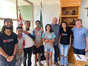 Na última semana, os alunos da Sogube (Sociedade Guairense de Beneficência), Ryanna, Lindsy, Gabriel, Kauan e Gustavo, acompanhados das educadoras Thais e Lorraine e do facilitador Antônio, estiveram no gabinete da prefeitura para conhecer as atribuições de um Chefe do Executivo.