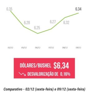Em relação às exportações norte-americanas, a semana continuou lenta, mas trouxe números maiores que o penúltimo relatório, aumentando para 700 mil toneladas. Esse número veio dentro do esperado pelo mercado, que projetava entre 300 mil e 1,07 milhão de toneladas. Com isso, Chicago fechou a semana próximo a estabilidade, valendo U$6,34 por bushel (-0,16%).]