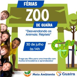 A atividade proposta pretende encerrar o período de férias escolares com muita diversão e conhecimento para os visitantes do zoo. “Prestigiem os eventos do nosso zoológico. Levem suas crianças para um domingo de muita diversão e novas descobertas para os pequenos”, convida a profissional.