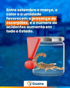 Entre as orientações repassadas à população estão ações que podem ser adotadas no dia a dia, como manter quintais limpos, vedar ralos, eliminar entulhos e reduzir ao máximo os esconderijos que favorecem a presença dos escorpiões.