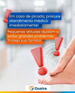 A recomendação também enfatiza o que deve ser feito em caso de picada. A orientação é lavar o local com água e sabão e procurar imediatamente a Unidade de Saúde mais próxima. A Prefeitura ressalta que práticas caseiras, como torniquetes ou tentativa de sugar o veneno, não devem ser realizadas e podem agravar o quadro.