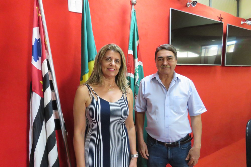 O vereador José Reginaldo Moretti ao lado da diretora da escola Enoch, professora Conceição Aparecida Tosta, a Cêssa