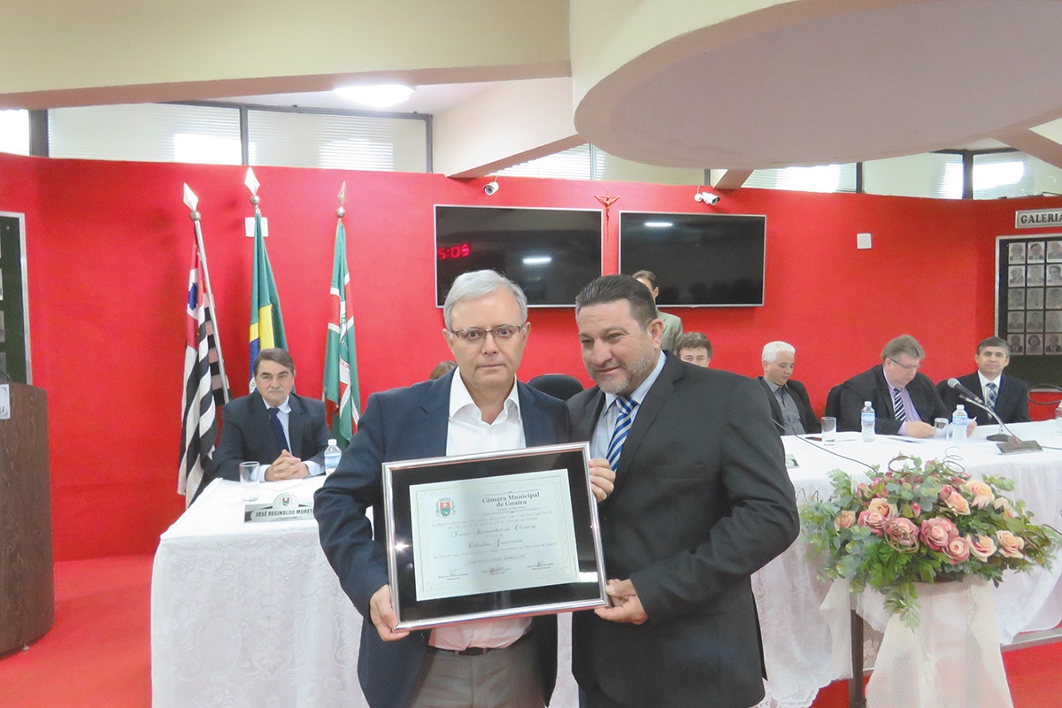 Na noite da última quinta-feira, 6, a Câmara Municipal realizou sessão solene para a entrega do título de Cidadão Guairense ao empresário Isaias Bernardes de Oliveira, proprietário da rede de sorveterias Chiquinho.