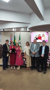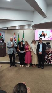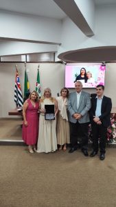 Encerrando a lista de homenageadas, Rosa Nunes da Costa recebeu a homenagem do vereador Marcelo Machado de Oliveira. Empreendedora e figura conhecida na cidade, construiu sua trajetória com base no trabalho, na fé e no acolhimento à comunidade.