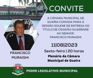 O convite para esta sessão solene é estendido a toda a população guairense. A homenagem será transmitida ao vivo pelo site www.camaraguaira.com.br, Youtube (Câmara Municipal de Guaíra) e Facebook @camaraguaira.