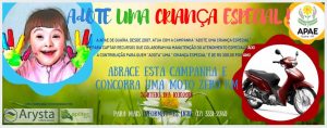 Mais uma novidade chega para incentivar a campanha “Adote 2018” da APAE – Associação dos Pais e Amigos dos Excepcionais de Guaíra. Agora, todos os doadores vão concorrer a uma Moto 0 Km, que será sorteada no dia 10 de outubro deste ano, através de uma urna da entidade.