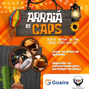 Os convidados deverão levar um prato de quitanda para compor a mesa coletiva. Há sugestão de que todos participem com roupas típicas para a dança da festa junina. “Estamos preparando o Arraiá do CAPS, no qual pacientes, familiares e vizinhança são convidados a confraternizar. Estamos retornando com nosso tradicional evento após três anos de atividades coletivas suspensas devido às restrições impostas pela pandemia da Covid-19”, convida a enfermeira do CAPS, Patricia Dimas.