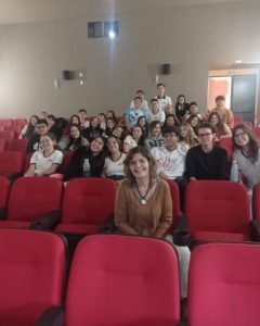 A audiodescritora e professora Bell Machado participou de todos os encontros e foi responsável pela palestra realizada ao final de todas as exibições de filme, com o título “Vamos Descobrir por que a Gente Gosta de Cinema?”. A palestra abordou a história do cinema e os objetivos de criação de cineclubes como espaços para pensar cultura de modo coletivo.