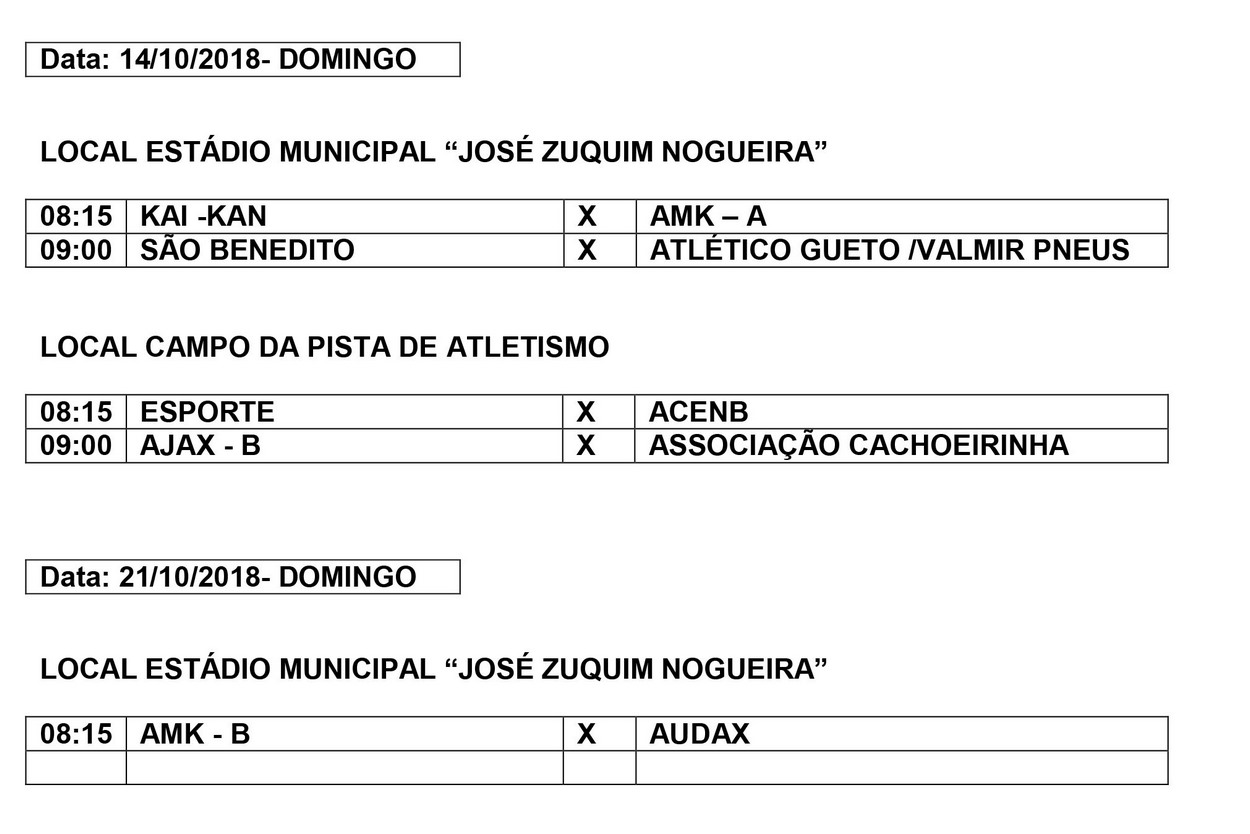 Quinze equipes estão participando do campeonato. Os jogos serão sempre aos domingos, com partidas acontecendo simultaneamente, as 8h15 e as 09h, nos campos do Estádio Municipal “José Zuquim Nogueira” e da Pista de Atletismo, no Parque Ecológico Maracá.