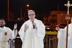 A presença do Bispo Diocesano Dom Milton vem confirmar todo propósito da comunidade. “A presença do nosso Dom Milton, nosso Bispo, é um sinal de confirmação da fé, de comunhão com a igreja e com o nosso pastor. É muito importante receber o nosso Bispo em uma missa de comunidade, celebrada com muita simplicidade, na rua, pois ainda não temos nosso espaço, mas vem confirmar toda esta nossa comunhão”, destacou padre Diego.