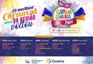 Assim, a prefeitura anuncia uma programação musical completa, valorizando os músicos de Guaíra, dando oportunidade para que eles possam mostrar o seu talento e animarem a folia de todos os participantes.