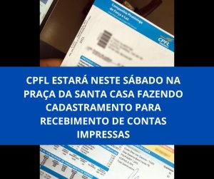 CPFL estará neste sábado na praça da santa casa fazendo cadastramento para recebimento de contas impressas