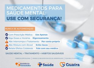 “O uso correto aumenta significativamente a eficácia do tratamento e reduz os riscos. A responsabilidade no uso do medicamento é um passo fundamental para o sucesso na jornada da saúde mental,” afirma a farmacêutica Marcelle Caligaris Prado dos Santos, da equipe do Departamento de Assistência Farmacêutica de Guaíra.