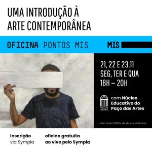 Ministrado pelo Núcleo Educativo do Paço das Artes através do programa Pontos MIS, o curso apresentará as diferentes linguagens e suportes explorados pela Arte Contemporânea e introduziu, ainda, o debate da decolonialidade no campo das artes. Serão apresentados trabalhos de artistas do cenário internacional e do contexto brasileiro.