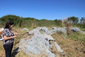 Momento em que a vereadora Dra. Bia Junqueira encontrou a grande quantidade de resíduo de couro descartado irregularmente no município