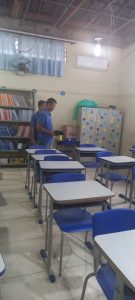 O setor informa que foi solicitado à diretoria municipal de Obras a inspeção do forro da sala, pois os professores e alunos ficavam desconfortáveis com o barulho durante as chuvas e ventanias. Após a inspeção, a equipe de profissionais identificou a necessidade de alguns ajustes que não foram feitos durante a última reforma, em 2019, como a fixação de parte do telhado.
