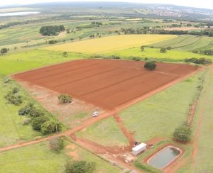 Localizada em solo de textura média-argilosa, a área experimental foi dividida de forma a permitir experimentos com até oito tratamentos com cinco repetições, além da testemunha. Os tubos gotejadores são georreferenciados por GPS e foram enterrados a 25 cm de profundidade e com espaçamento de 80 cm. O gotejamento subterrâneo permite uniformizar a umidade do perfil do solo, viabilizando o plantio sem a necessidade de chuvas. Milheto e braquiária foram plantados para estruturar o perfil do solo e fornecer palhada de cobertura, condições que vão tornar a área apta a receber os primeiros experimentos.