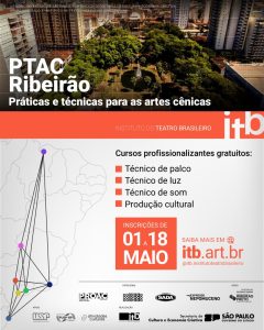 De 1º a 18 de maio estarão abertas as inscrições para os cursos gratuitos de formação nas áreas de som, luz, palco e produção cultural, que serão oferecidos em Ribeirão Preto. O programa de cursos técnicos gratuitos oferece quatro formações: Técnico de Som, Técnico de Luz, Técnico de Palco e Produção Cultural para formação de produtores e técnicos culturais PTAC – Práticas e Técnicas para as Artes Cênicas.