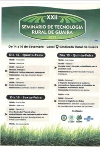 Organizado pelo Sindicato Rural, Federação da Agricultura do Estado de São Paulo (FAESP), Serviço Nacional de Aprendizagem Rural (SENAR) e Serviço Brasileiro de Apoio às Micro e Pequenas Empresas (SEBRAE/SP), o seminário trará uma série de palestras que trarão informações atuais sobre temas relacionados ao agronegócio brasileiro.