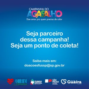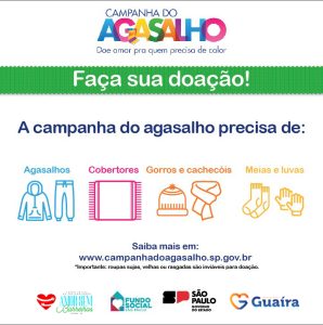 “Estamos iniciando a campanha, após a liberação do Estado e estamos nos movimentando rapidamente para mobilizar nossa sociedade guairense e arrecadar o maior número de agasalhos e cobertores e levar para oferecer a quem precisa. Lembrando que os itens devem estar em bom estado de conservação e limpos. Contamos com a colaboração de todos, pois sabemos o quanto os nossos cidadãos são tão solidários”, afirma a presidente do FSS, a primeira-dama Marta Barbar da Silva.