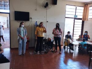 Os produtos foram recebidos pela diretora da entidade, a Dedé. Em seguida, Marta aproveitou a oportunidade para distribuir doces a todos os atendidos da APAE, em celebração à Páscoa.