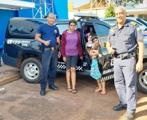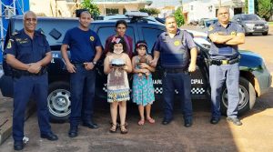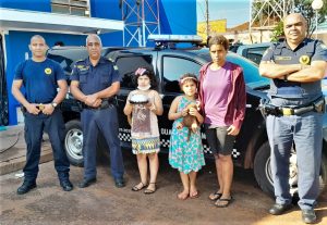 O Comandante Izaias e os GCMs Rocha, Alves e Ivair recepcionaram a menina com muita alegria e satisfação.