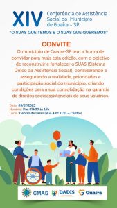 Serão eleitos delegados representantes do poder público e sociedade civil para participação na Conferência Estadual da Assistência Social. O quantitativo de delegados será definido por categoria, de acordo com a LOAS – Lei Orgânica da Assistência Social – para Guaíra, município de porte 2 , dois representantes do poder público e sociedade civil .