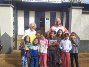 No mês de agosto, Tia Teca fez duas ações de contações de história para a comunidade. No dia 11 de agosto, em comemoração ao Dia do Estudante, o Projeto Agenda Cultural foi até a Praça Oswaldo Ribeiro de Mendonça, um espaço público anexo à Sociedade Guairense de Beneficência – Sogube, para contar histórias para os alunos atendidos pela instituição.
