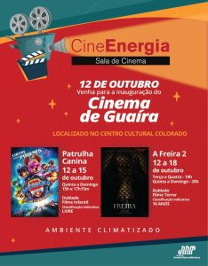 “O Cine Energia veio para ficar. Guaíra vai viver os bons tempos de poder contar com um cinema. O IORM está selecionando lançamentos do circuito exibidor nacional para trazer em primeira mão para a nossa cidade.