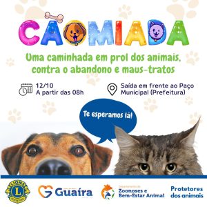 No dia 12 de outubro, a cidade de Guaíra se prepara para sediar a terceira edição da CãoMiada, um evento que tem como objetivo a conscientização da comunidade sobre a importância do cuidado e respeito aos animais e a arrecadação de rações para os animais abandonados acolhidos pelos protetores da cidade. A iniciativa é organizada em uma parceria pela Prefeitura de Guaíra, Lions Clube, os vereadores Renan Lopes, protetores e voluntários.