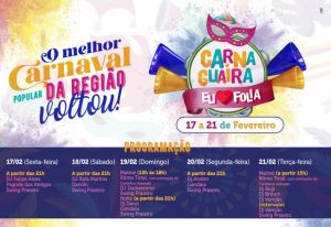 Carna-Guaíra – Eu Amo Folia volta a movimentar a região, depois de dois anos sem, devido a pandemia de Covid-19. A festa que contará com toda infraestrutura de primeira linha, com monitoramento por câmeras, banheiros químicos, cercamento, praça de alimentação, com mais de 30 ambulantes, além dos comerciantes perenes do local, equipamentos de som de alta qualidade e uma grade de shows com os “pratas da casa” que muito agrada ao público fiel da folia de rua.
