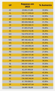 No DF, por exemplo, o reajuste supera 50% o valor defasado. Estados como Sergipe, Roraima, Piauí e Maranhão conseguiram mais de 40% de reajuste, em comparação aos recursos previstos para 2022.