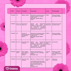 PROGRAMAÇÃO MÊS DA MULHER 2023 “Guaíra Delas – Mulheres em Foco”