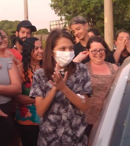 A recepção de Manu foi emocionante e cheia de carinho, com a presença de amigos e familiares que a aguardavam na pracinha do Aniceto, próxima à creche e pré-escola. Todos, unidos pelo mesmo sentimento de amor e torcida por sua recuperação, enviaram energias positivas, rezaram, aplaudiram e demonstraram o quão importante é essa pequena guerreira em suas vidas.