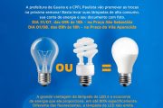 A prefeitura de Guaíra e a CPFL Paulista vão realizar a troca de lâmpadas incandescentes e fluorescentes por lâmpadas de LED, gratuitamente, para a população guairense. Serão até oito lâmpadas por casa. Basta levar suas lâmpadas de alto consumo, sua conta de energia e seu documento com foto para os pontos de troca na segunda […]