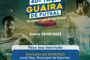 A prefeitura de Guaíra, através do departamento municipal de Esportes, está abrindo inscrições de equipes para a Taça Guaíra de Futsal 2023 “Dr. Carlos Lisandro do Carmo”, que chega à sua 40ª edição em 2023. Interessados devem retirar a ficha de inscrição no setor, localizado na Rua 8 nº 1400 (prédio da Diretoria Municipal de […]