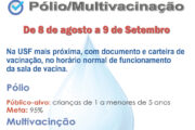 As campanhas de Vacinação Contra a Pólio e Multivacinação, que começaram no dia 8 de agosto e vão até 9 de setembro, estão apresentando uma adesão muito baixa. Para se ter uma ideia, até segunda, dia 22, a média de cobertura vacinal para o público-alvo da poliomielite estava em 37,2%, a meta a ser atingida […]