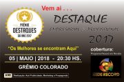 No próximo sábado, 05 de maio, será realizado o “Destaque Empresarial & Profissional 2018”, a partir das 20h30, nas dependências do Grêmio Colorado. O evento irá homenagear personalidades de diversos segmentos da sociedade guairense, com a entrega de certificado e leitura de suas conquistas no município. Logo após o […]