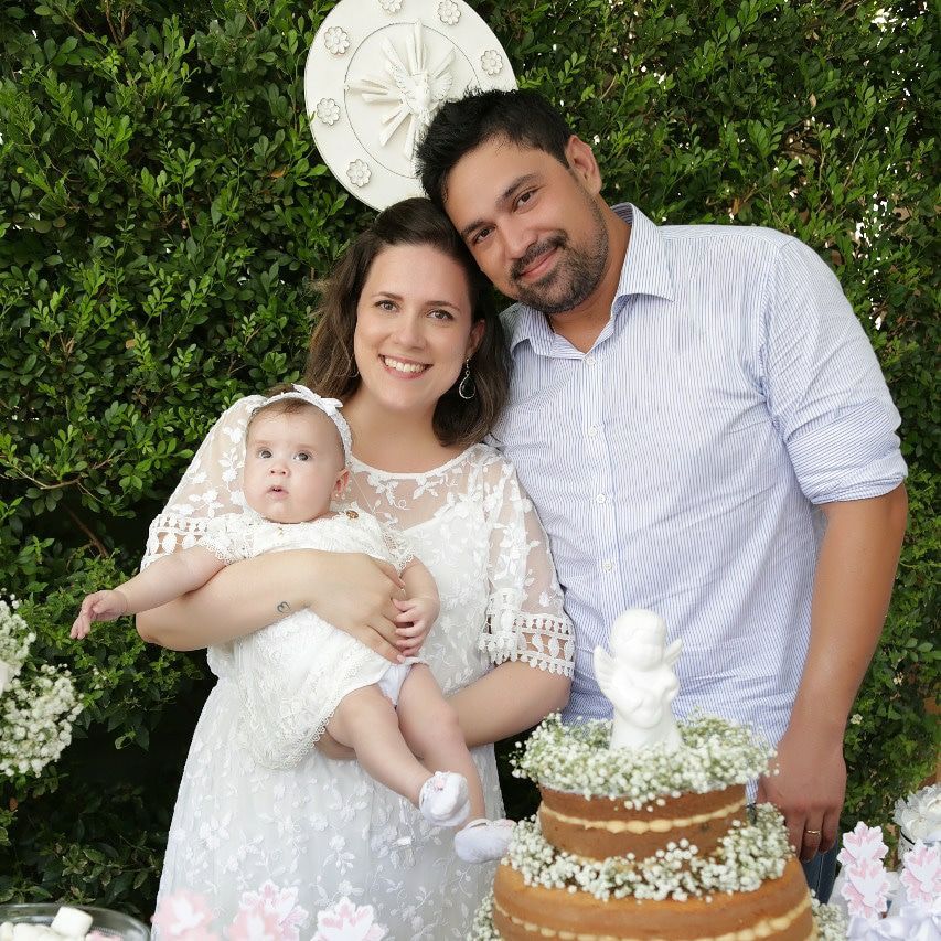 Momento família fica registrado na nossa folha, com os papais Paula e Edson e a pequena Marina – que é a alegria da casa.