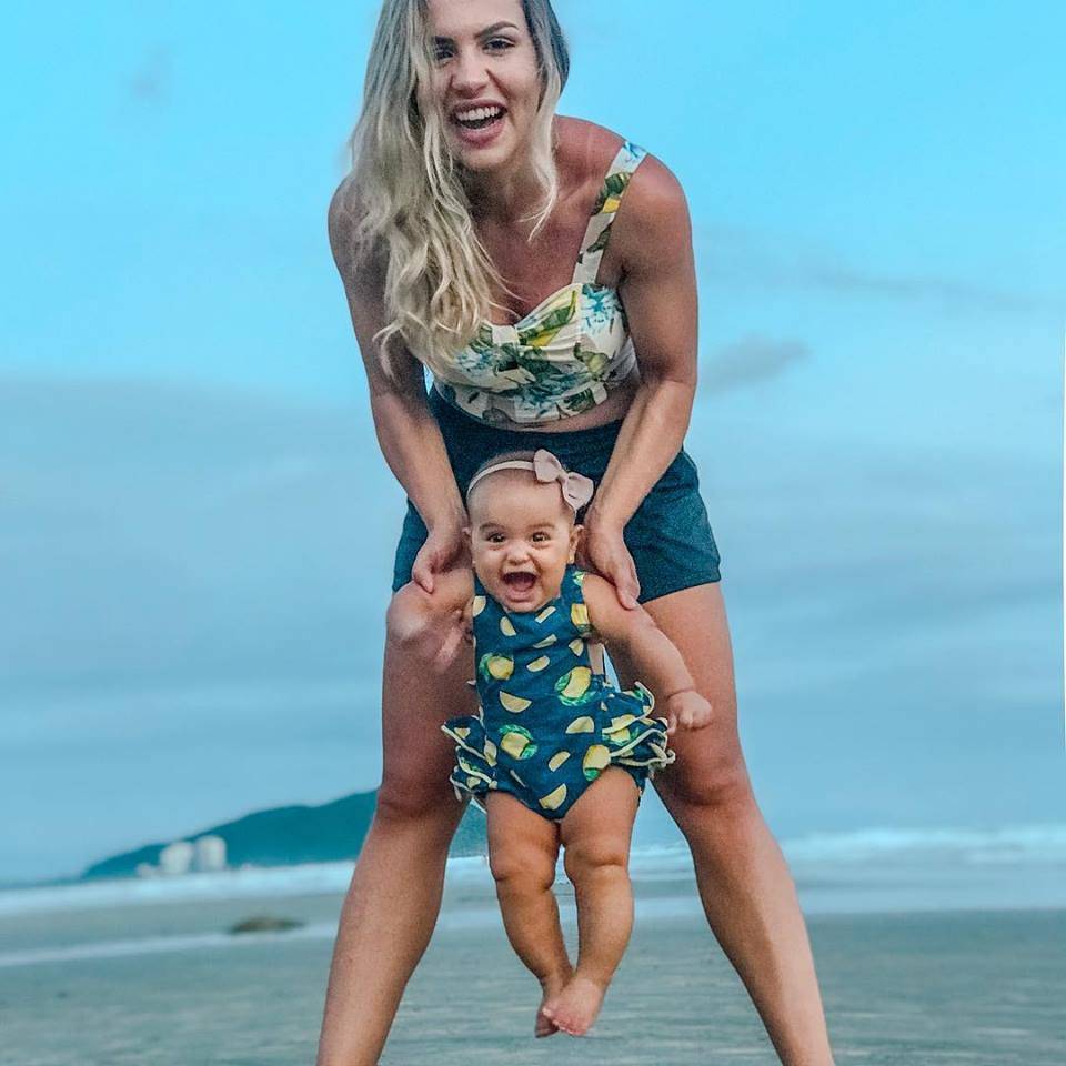 Tem coisa mais bonita neste mundo do que um sorriso entre mãe e filha? Bruna Barrachi e Antonella nos dão este prazer, num bonito clique na praia…