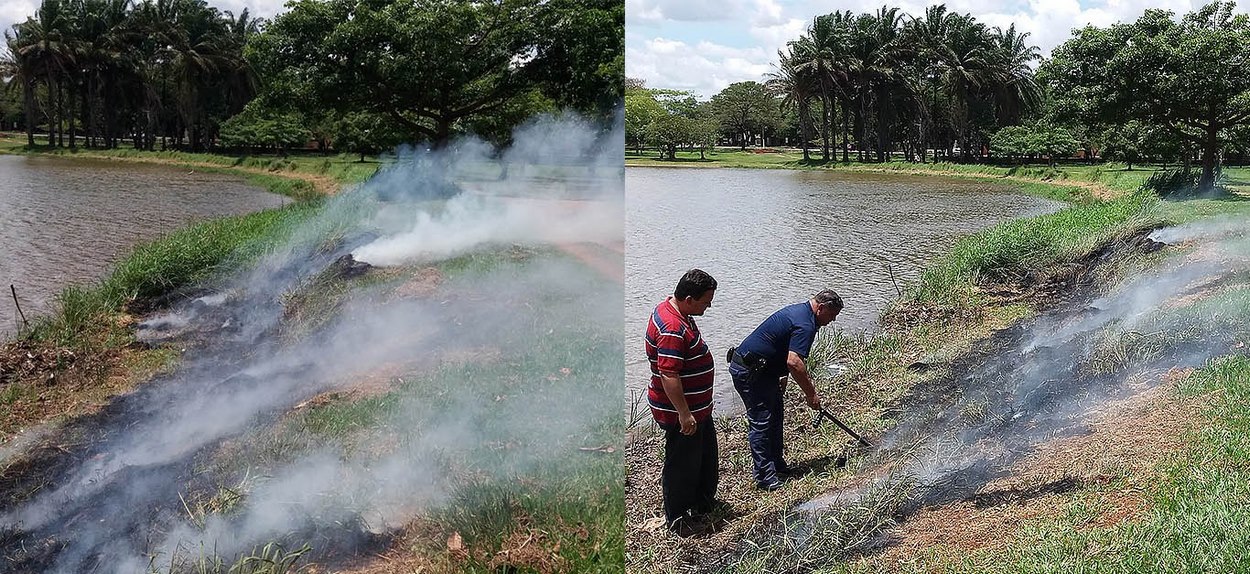 Por volta das 11h30 da manhã desta terça-feira, 23, vândalos atearam fogo à vegetação que circunda o lago do Parque Ecológico Maracá, cartão-postal de Guaíra. O local está passando por uma limpeza geral promovida pelo Departamento de Manutenção do Parque Maracá, coordenado por Everton Pio. O trabalho conta com o apoio dos demais setores da administração municipal.