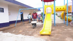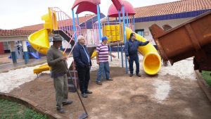 Foi implantada uma areia especial para parques e, agora, as crianças podem desfrutar dos locais para a recreação. Este é o objetivo da administração municipal, de cuidar não só da educação, mas do lazer e saúde dos alunos da rede.