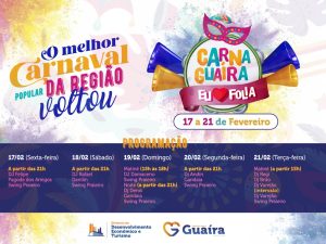 O prefeito destacou que o CarnaGuaíra 2023 “Eu Amo Folia” promete muita diversão e música para os seus visitantes, através dos artistas locais, para que eles possam mostrar o seu talento e animarem a folia de todos os participantes.