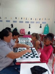 Na carga horária diária excedente (2 horas/aula) estão sendo desenvolvidas as aulas de xadrez tradicional, leitura/produção textual e arte corporal/jogos, com fornecimento de material impresso apostilado. Os professores passaram por capacitação para o programa.