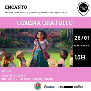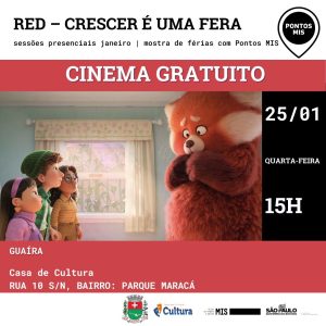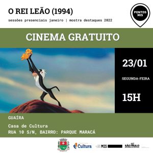 Nesta primeira atração dos Pontos MIS em Guaíra serão oferecidos gratuitamente para o público infantil, de 3 a 14 anos, os filmes: Rei Leão (dia 23); Família Adams -2019 (dia 24); Red – Crescer é uma Fera (dia 25) e Encanto (dia 26). Além de assistir as “películas” os espectadores terão pipocas de graça. As sessões começam sempre as 15h.